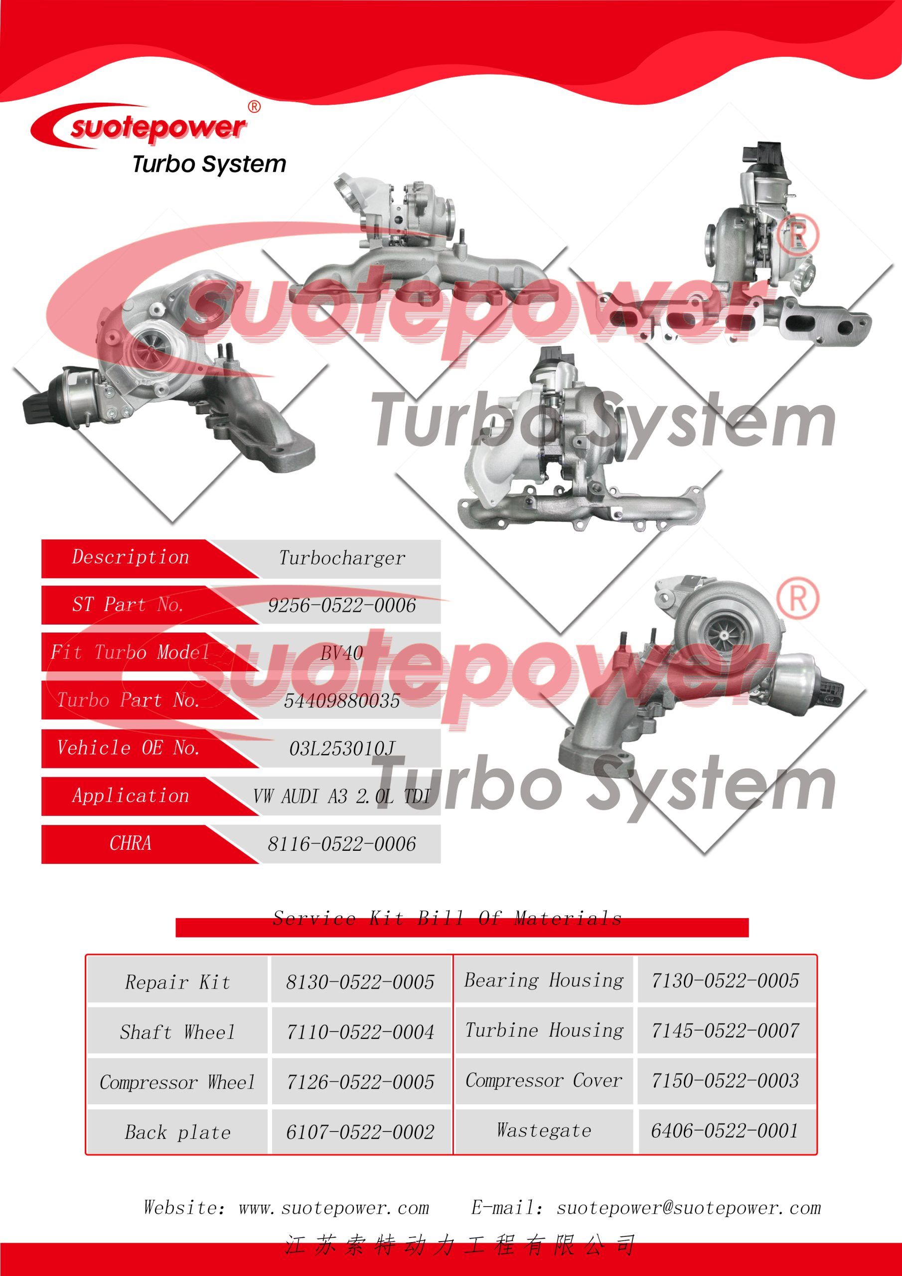 产品编号:SP/NO:9256-0522-0006 Replace:BV40 54409880035 VW AUDI A3 2.0L TDI